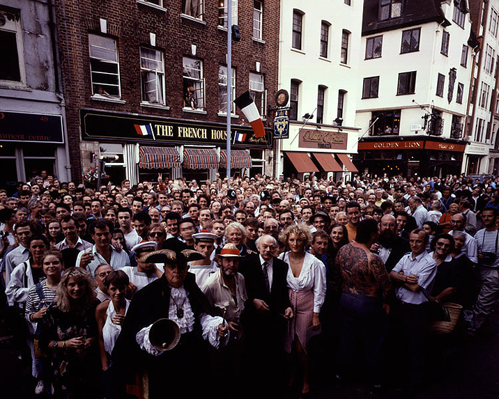 On Friday 14 July 1989, Gaston retired. And of course, being Gaston, he didn’t choose just any old day to go en retraite – he choose Bastille Day, and moreover it was the day marking the storming of the Bastille’s bicentennial. And of course, Soho being Soho wasn’t about to mark the retirement of its longest established patron without throwing a lavish party that resulted in Dean Street being closed to traffic, and the pub having to close twice in order to replenish the stock of booze.