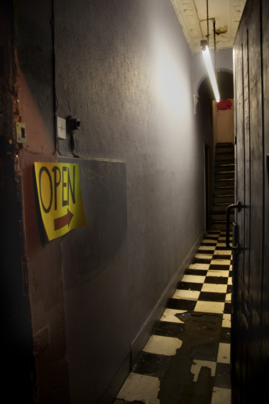 I love the blurring of boundaries in Soho – music, art, food, sex – the city in microcosm. Just before hailing a taxi, we noticed this doorway, with its eloquent one-word sign, and it was like encountering an annex to the exhibition, an intimate little theatre/Tardis that opened a corridor between centuries. The photograph took itself before I clicked the shutter. The poem, such as it is, took a little longer: