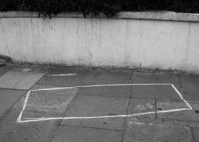 Posted: June 30, 2011 Filed under: Vanishings | Tags: CB Editions, chalk rectangle, Shepherd's Bush Comments Off on Days and Nights in W12. Photographs and text: Jack Robinson (2/4)Pavement with chalk rectangle: Percy Road, W12, 2007. Photo © Jack Robinson.