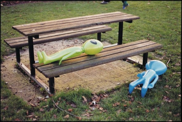 Posted: August 8, 2012 Filed under: Conspiracies, Parks | Tags: close encounter, disc-shaped object, inflatable, UFO over London Comments Off on Park Life. Photo: David Secombe. (3/5)Hillyfields, Lewisham. © David Secombe 2002.