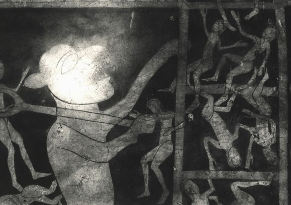 Posted: October 31, 2012 Filed under: Anniversaries, Churches, Funereal, Gargoyles, Interiors, Monumental, Out Of Town, Public Art | Tags: Chaldon Church, demon, ladder of salvation, Purgatory and Hell, Trick or Treat 2 CommentsMural, Chaldon Church, Surrey. Photo © David Secombe, 1989.