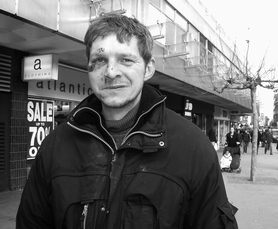 He fell down the stairs. He slipped on the ice. He was coming home from work on Friday night when he got mugged – they took his money, his cards, his identity papers. They flung back his wallet, empty except for the photo of his kids – his kids to whom he’ll say, on Saturday morning, that he fell down the stairs, that he slipped on the ice