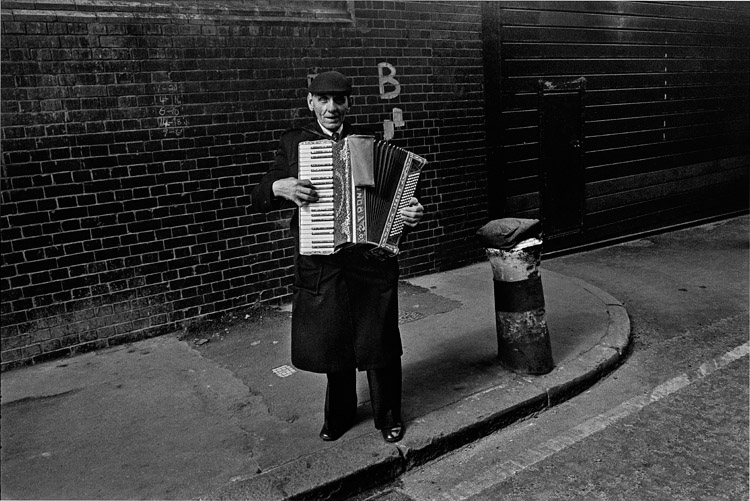 Street musician, Brick Lane, 1978. © David Hoffman.