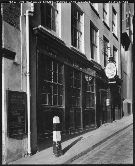 Old Wine Shades is part of the El Vino group, the venerable drinking chain that branches across the City of London. The one on Fleet Street was a legendary haunt of the local hacks in the days when ‘the Street of Shame’ was thronged with them, and El Vino’s continues to trade on its reputation as a City institution. However, an anonymous reviewer (‘A Customer’) on www.allinlondon.co.uk recently (August 2010) described Old Wine Shades thus: